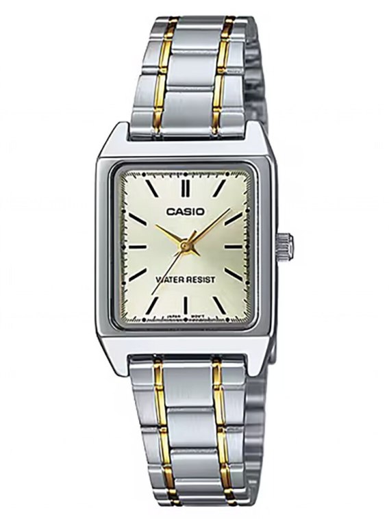 Zegarek CASIO LTP-V007SG-9E wyróżnia się elegancją prostokątnej koperty i minimalistycznym designem. Jego niezawodność oparta jest na precyzyjnym japońskim mechanizmie kwarcowym, cenionym w świecie zegarmistrzowskim za doskonałą dokładność.