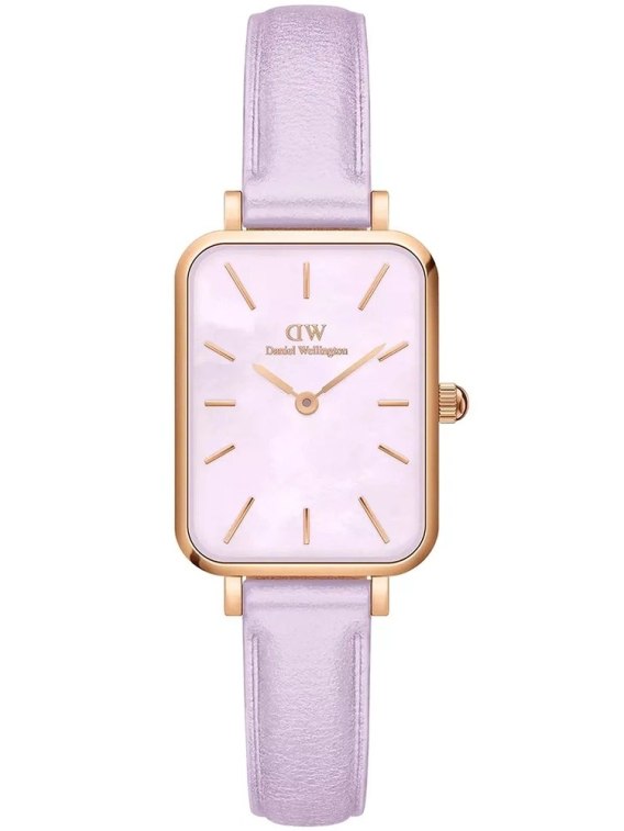 Zegarek Daniel Wellington Quadro Lavender Mop 20mm DW00100637 to delikatny, kobiecy model, który zachwyca subtelnymi detalami. Posiada prostokątną kopertę w odcieniu różowego złota, która idealnie komponuje się z fioletową, perłową tarczą, subtelnie odbijającą światło. Zegarek wyposażony jest w elegancki, fioletowy / lawendowy skórzany pasek, który dodaje mu lekkości i komfortu noszenia. Całość tworzy harmonijną i zmysłową kompozycję, idealną dla kobiet ceniących elegancję i ponadczasowy styl. To doskonały wybór na co dzień, który podkreśli subtelną kobiecość każdej właścicielki..