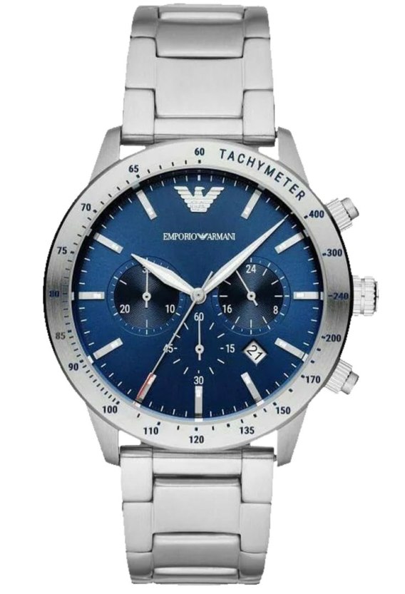 Zegarek męski Emporio Armani Mario AR11306 to elegancki i nowoczesny model o sportowym charakterze. Wykonany jest ze stali szlachetnej w srebrnym kolorze, z kopertą o średnicy 43 mm i stalową bransoletą, która nadaje mu solidny i męski wygląd. Niebieska tarcza z efektem sunray przyciąga uwagę i dodaje całości wyjątkowego stylu. Na tarczy umieszczono trzy subtarcze chronografu oraz datownik, dzięki czemu zegarek jest nie tylko stylowy, ale i funkcjonalny. Wskazówki oraz indeksy pokryte są masą luminescencyjną, co pozwala na odczyt godziny w ciemności. Całość chroni szkło mineralne odporne na przypadkowe zarysowania, a wodoszczelność 5 ATM zapewnia ochronę przed zachlapaniami i deszczem. Zegarek napędzany jest precyzyjnym mechanizmem kwarcowym, który gwarantuje dokładność i niezawodność. Emporio Armani Mario AR11306 to idealny wybór dla mężczyzny, który ceni elegancję, nowoczesny design i praktyczne rozwiązania w jednym stylowym dodatku.