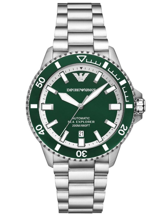 Męski zegarek Emporio Armani AR60080 Sea Explorer AUTOMATIC to elegancki męski zegarek, który został przygotowany z myślą o wszystkich miłośnikach mody i najnowszych stylistycznych trendów. Bransoleta oraz koperta wykonane zostały ze stali szlachetnej. Ten model zegarka czaruje unikatowym, bardzo charakterystycznym designem ponieważ każdy z elementów jest tu przemyślany i ściśle związany z aspektem funkcjonalnym. Jeśli szukasz zegarka na długie lata, to wybór tego modelu o niebieskiej tarczy będzie strzałem w dziesiątkę.