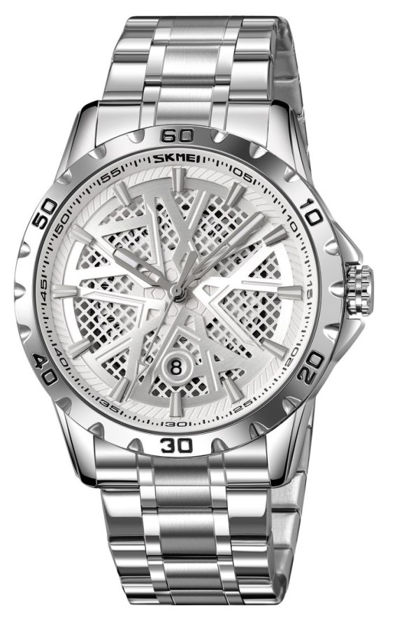 Zegarek Skmei 9337 to czysta, męska elegancja z pazurem - przyciąga uwagę wyrazistą, ale zarazem subtelną kolorystyką. Srebrna koperta i bransoleta tworzą solidną, klasyczną podstawę, która idealnie kontrastuje z trójwymiarową tarczą w odcieniach srebra. Taka tarcza z elementami 3D dodaje głębi i charakteru, a srebrne, fluorescencyjne indeksy i wskazówki sprawiają, że zegarek pozostaje czytelny o każdej porze.