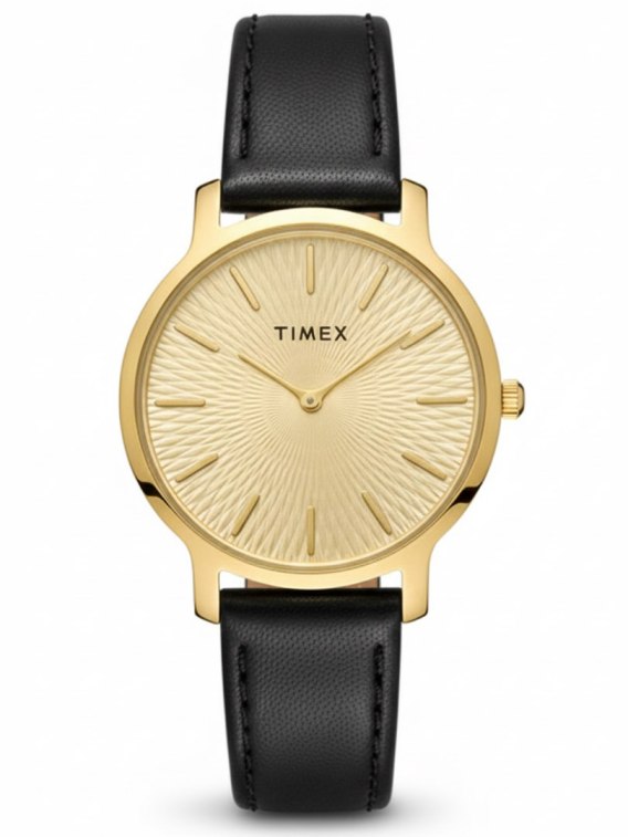 Elegancki damski zegarek TIMEX TW2W84600 pasuje idealnie do codziennych stylizacji, jak i na bardziej uroczyste okazje. Tarcza w kolorze złotym z ozdobnymi cyrkoniami - całość chroni mineralne szkło odporne na zarysowania. Model ten posiada czarny skórzany pasek oraz złotą kopertę zdobioną cyrkoniamivwykonaną z wysokiej jakości stali szlachetnej. Klasa wodoszczelności zegarka to WR30.