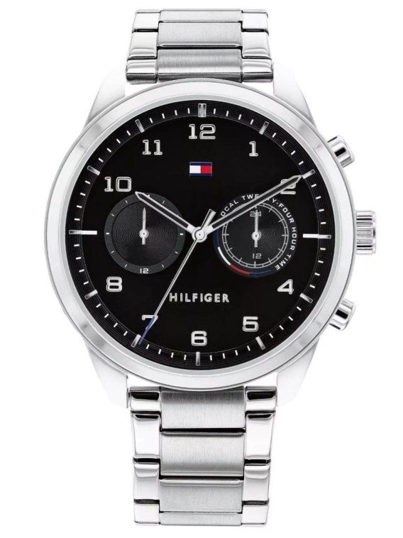 Zegarek męski Tommy Hilfiger 1791784 Patrick to modowy model w stylu casual, który pasuje do wielu stylizacji. Model 1791784 Patrick zostały stworzony z myślą o mężczyznach, dla których ważny jest zarówno elegancki wygląd, doskonała prezencja oraz solidne wykonanie. Zegarek 1791784 znakomicie sprawdzi się jako czasomierz zarówno na co dzień, jak i na wyjątkowe okazje. To także rewelacyjny pomysł na prezent, który z pewnością wywoła uśmiech. Jak wszystkie zegarki Tommy Hilfiger 1791784 wykonany został z wysokiej jakości materiałów - koperta wykonana jest ze stali szlachetnej, gwarantującej trwałość, odporność na korozję oraz wysoką odporność na uszkodzenia. Tommy Hilfiger 1791784 rewelacyjnie prezentuje się na nadgarstku, a dopasowana bransoleta ze stali szlachetnej zapewnia niezwykle komfortowe użytkowanie. Kolorystyka została utrzymana w ponadczasowych barwach, które można wykorzystać do różnych stylizacji. Na czarnej tarczy umieszczono rozpoznawalne logo marki. Działanie i precyzyjny pomiar czasu zegarka 1791784 zasila bateria napędzająca kwarcowy mechanizm o dużej dokładności. Zegarek posiada 5 ATM wodoszczelności znakomicie sprawdzające się na co dzień.